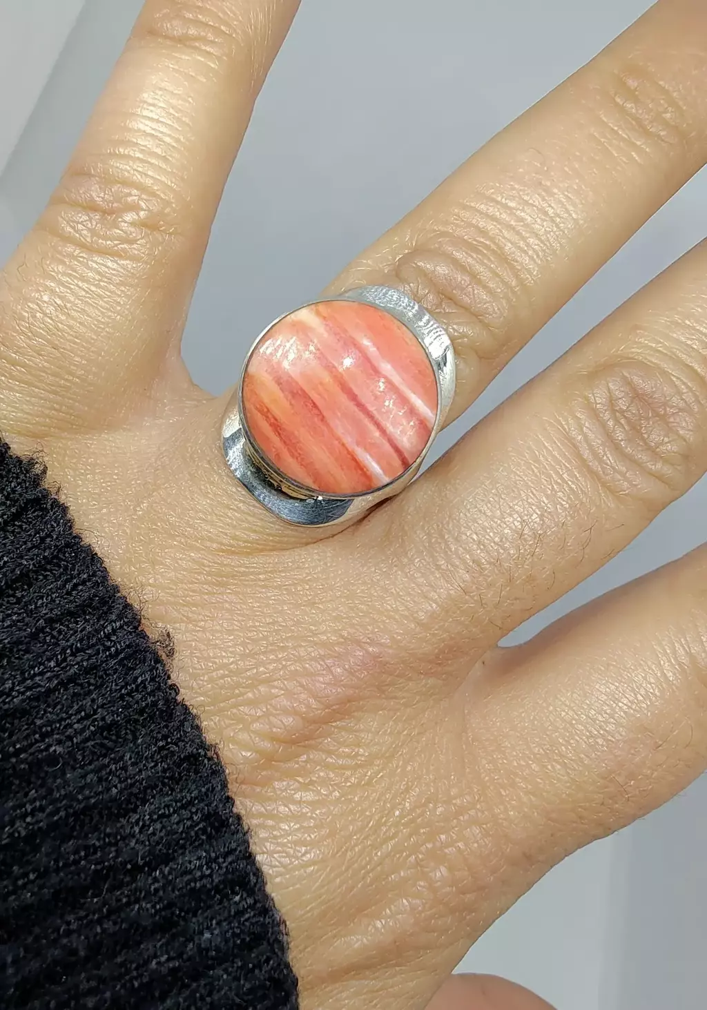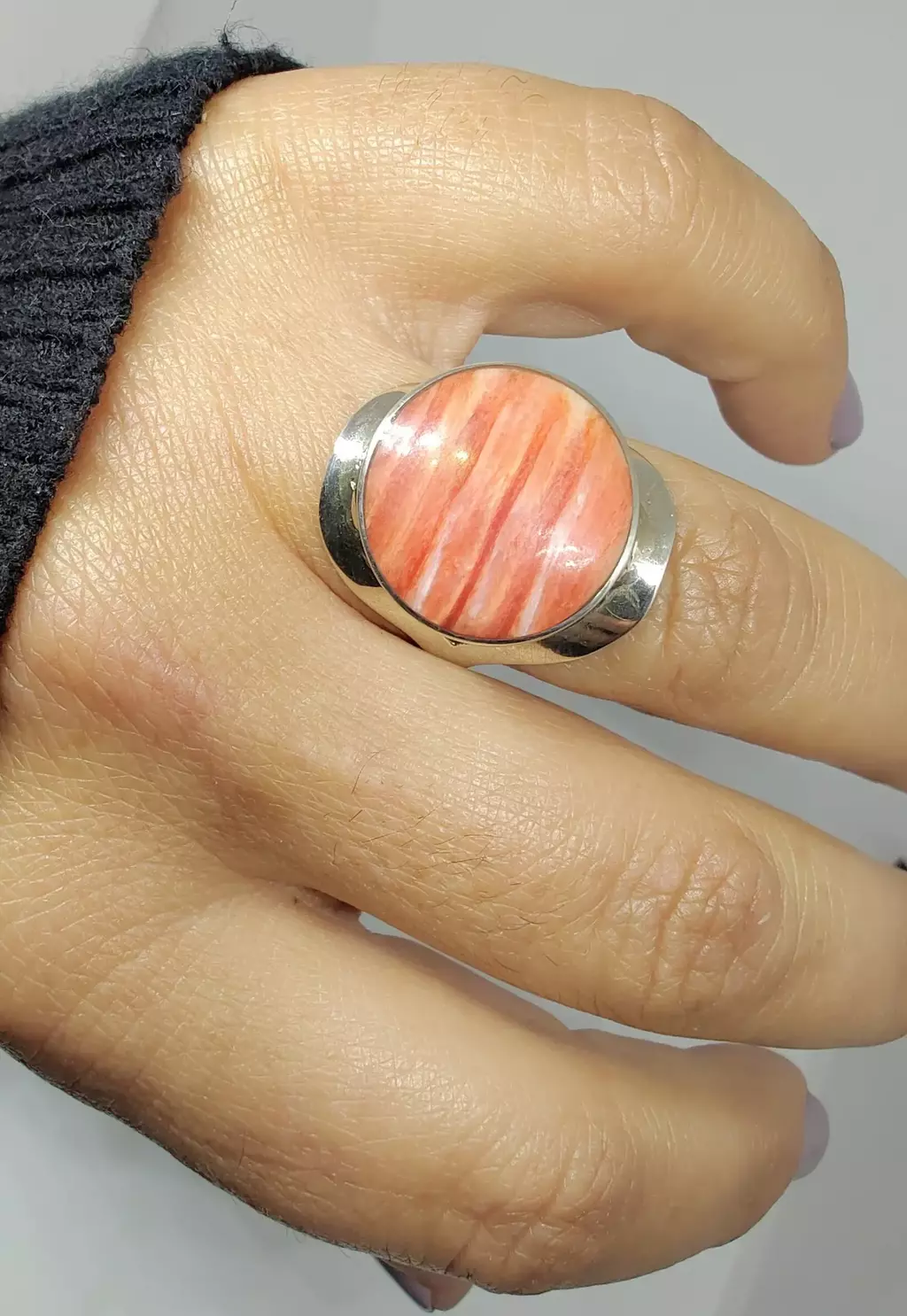 En este se realza una bellisima piedra natural en color rojizo anaranjado, propio de la Cornalina, dandole un toque de distincion y belleza